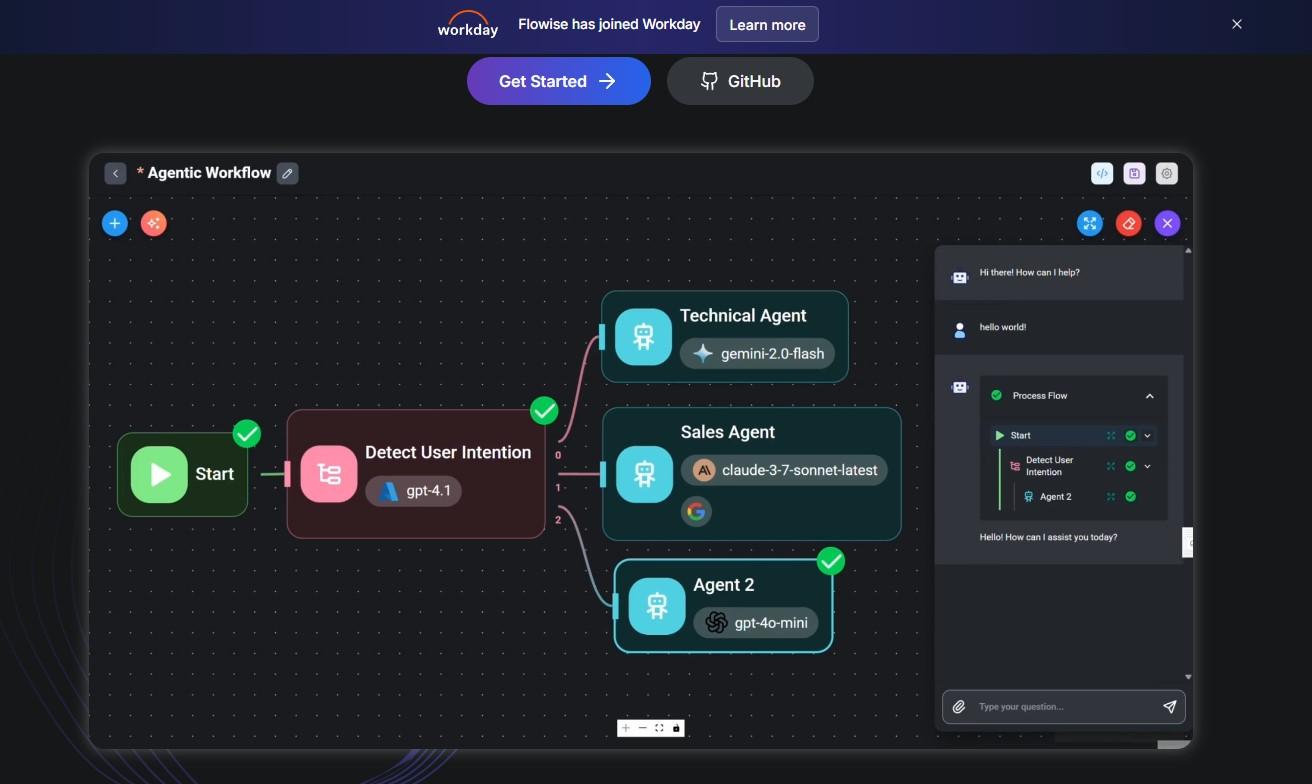 Beje, tai, ką siūlo įvairūs servisai ir brokeriai, iš esmės yra DI agentų kūrimo platformos, kur vartotojas agentą gali susikurti pats. Rezultate – gaunamas agentas, kuris renka naujienas, analizuoja įmonių ataskaitas ir atlieka paprasčiausių prekybos strategijų atgalinį testavimą. Tokių platformų yra nemažai: Gumloop, Dify, Flowise AI / Langflow (nuotraukoje aukščiau), Microsoft Copilot Studio ir kt.